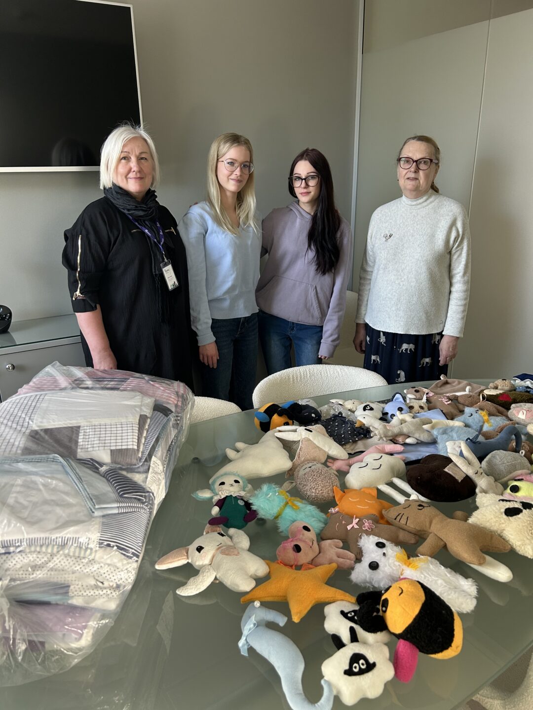 Valminud tekid ja mänguasjad anti üle Tallinna Lastehaiglale – osa neist jõudis vastsündinute osakonda, osa aga ka haigla teistesse osakondadesse, sealhulgas pikemalt ravil viibivate laste juurde.